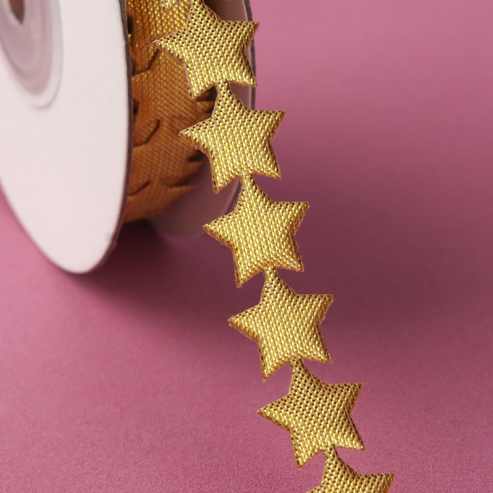 Лента декоративная фигурная «Звёзды», 15 мм, 9 ± 0,5 м, цвет золотой