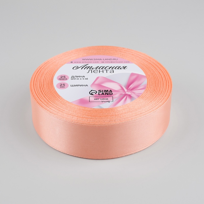 Лента атласная, 25 мм × 23 ± 1 м, цвет персиковый №127