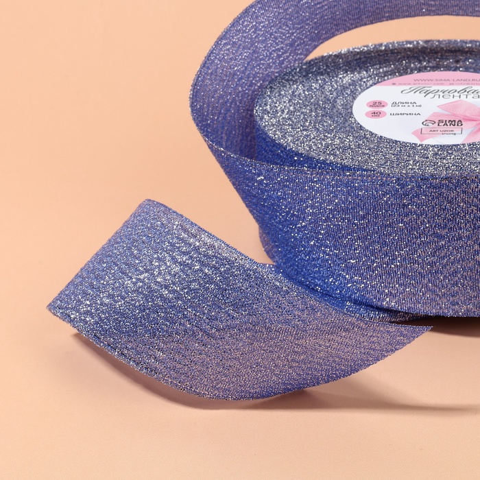 Лента парчовая, 40 мм, 23 ± 1 м, цвет синий №037
