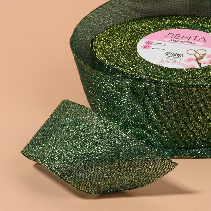 Лента парчовая, 40 мм, 23 ± 1 м, цвет зелёный