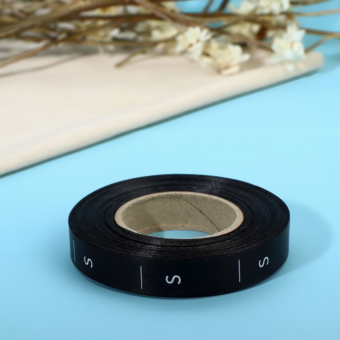 Размерник для одежды сатиновый 12мм*30м 1000шт "S" чёрный АУ