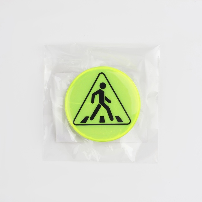 Светоотражающий значок «Пешеходный переход», d=3 см, жёлтый