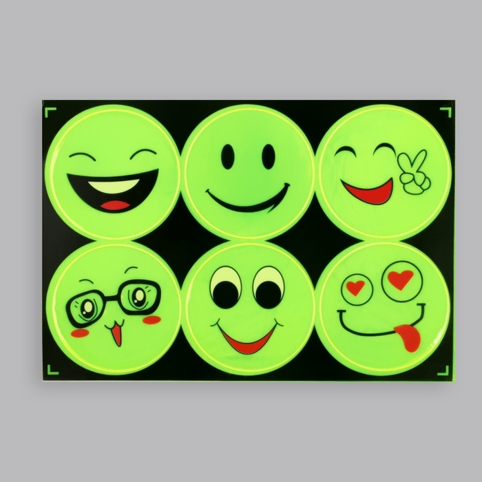 Светоотражающие наклейки «Смайлы», d=6.5 см, 6 шт. на листе, салатовые