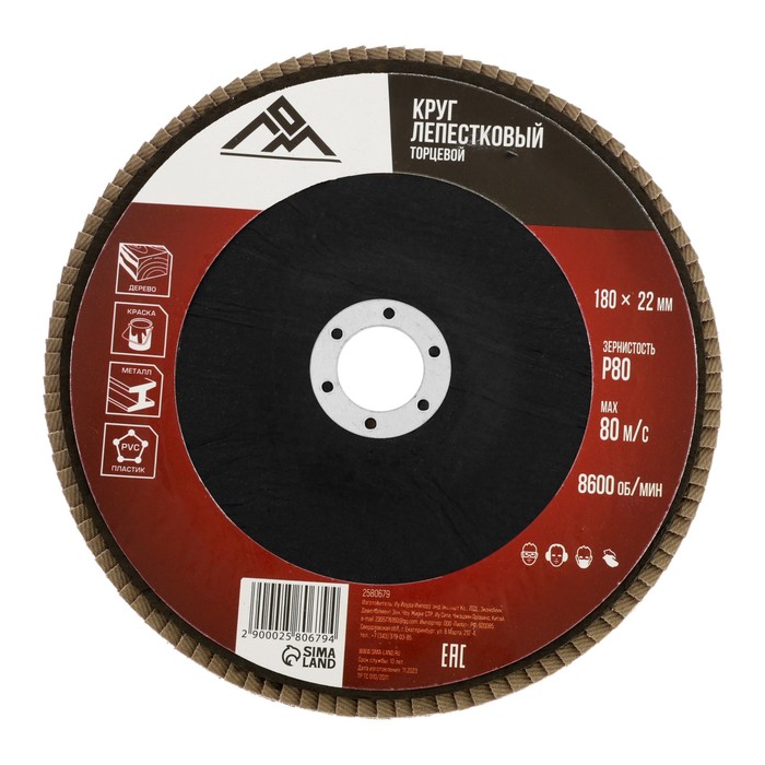 Круг лепестковый торцевой ЛОМ, 180 х 22 мм, Р80