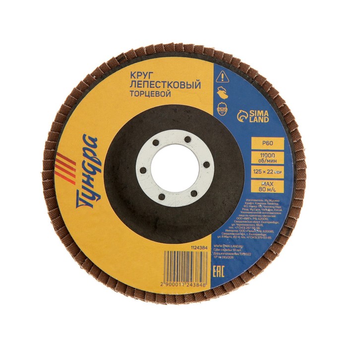 Круг лепестковый торцевой ТУНДРА, циркониевый (по нержавеющей стали), 125 х 22 мм, Р40