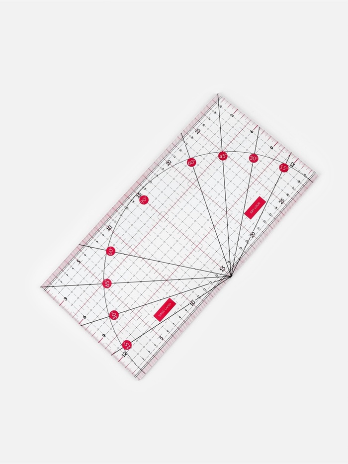 Линейка для квилтинга и пэчворка, с транспортиром, 30 × 15 см, цвет прозрачный/розовый