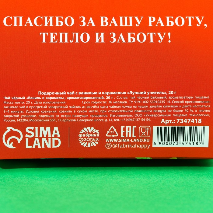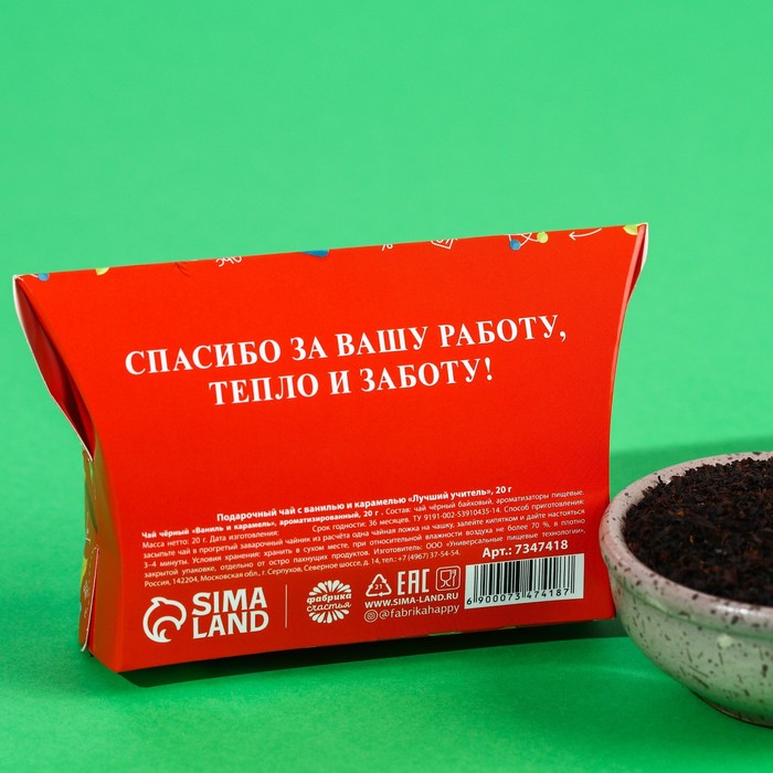 Чай чёрный подарочный «Лучший учитель» с ванилью и карамелью, 20 г.
