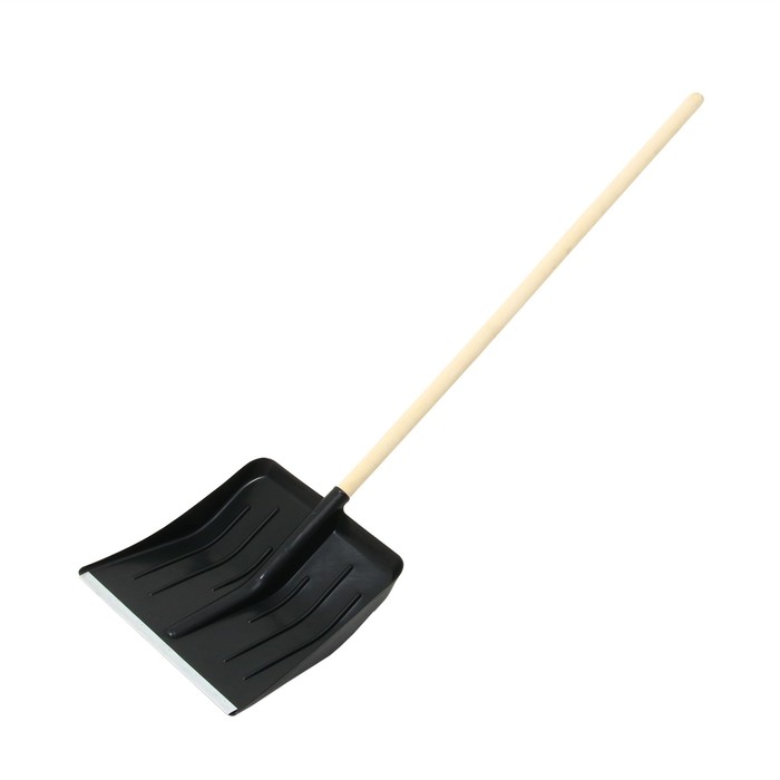 Лопата пластиковая, ковш 410 × 415 мм, с металлической планкой, деревянный черенок, с ручкой