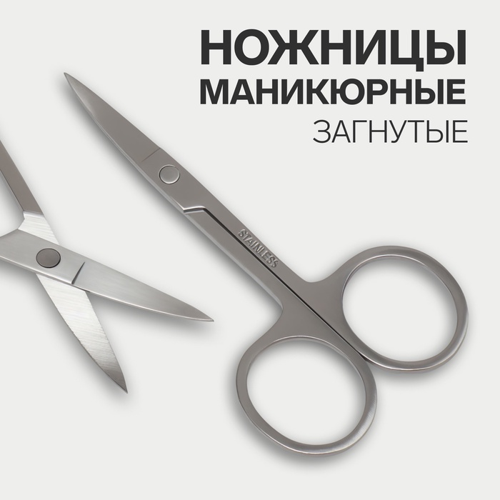 Ножницы маникюрные для кутикулы, загнутые, зауженные, 9 см, цвет серебристый