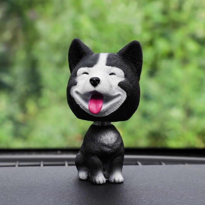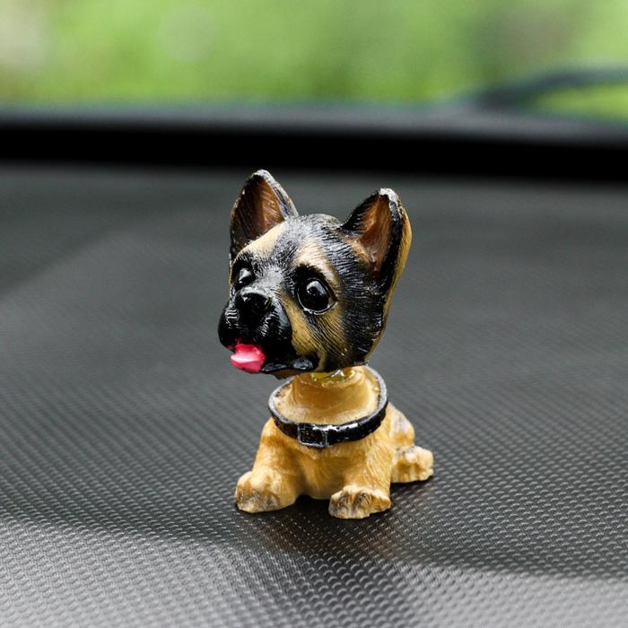 Собака на панель авто, качающая головой, малая, бежево-коричневый окрас