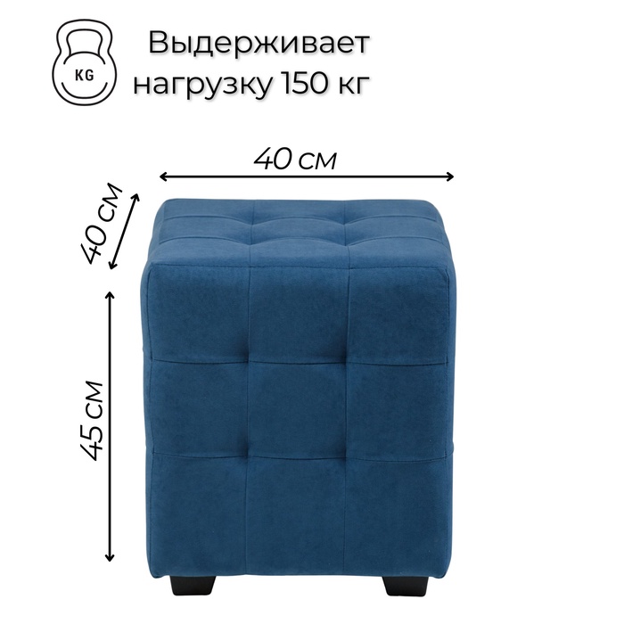 Пуф Стенли, 400 х 400 х 450, Синий велюр