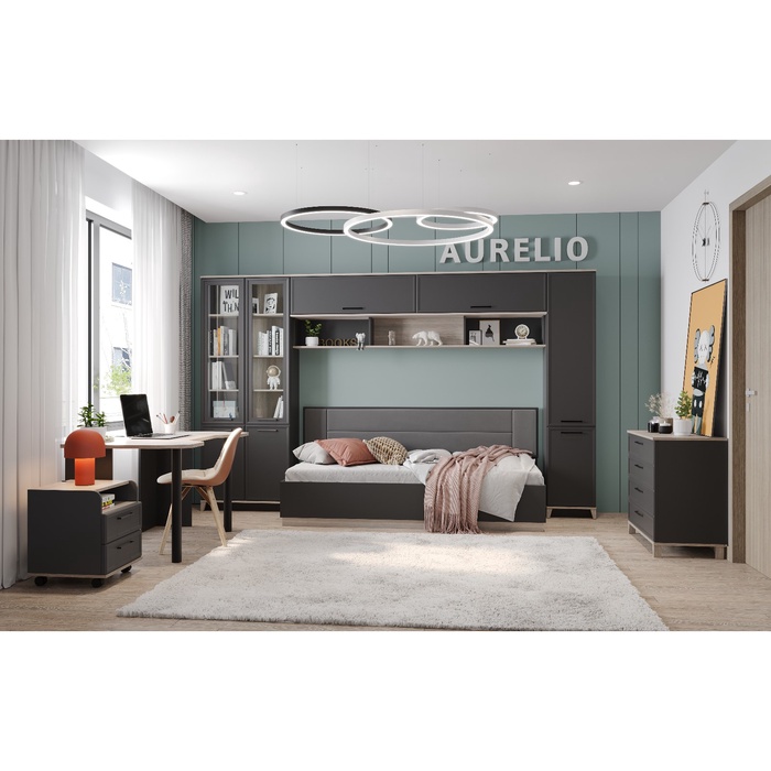 Тумба офисная Aurelio 94, 450×450×535 мм, цвет антрацит / блеквуд сатиновый