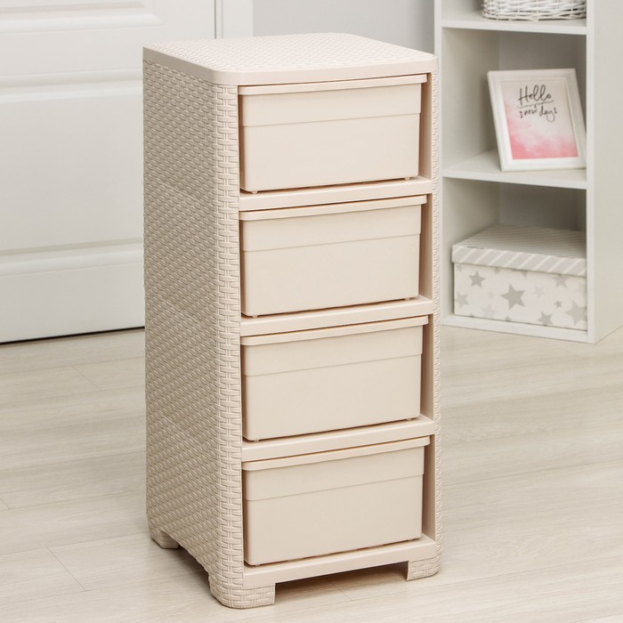 Комод 4-х секционный «Плетёнка», цвет слоновая кость