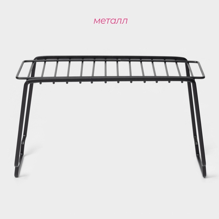 Полка для кухни 2-х ярусная Доляна, 33,5×20,5×39 см, цвет чёрный