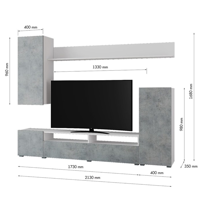 Гостиная Лира, 2130х1680х350, Белый матовый/Бетон