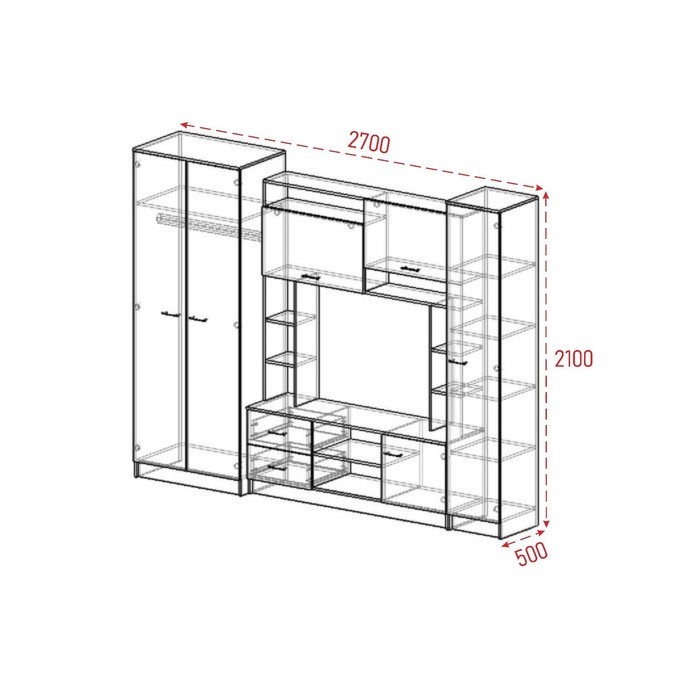 Гостиная МАРТА-11, 2700х500х2100, Белый