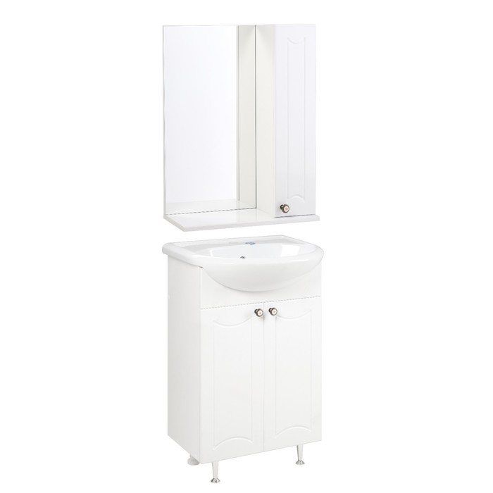 Комплект мебели для ванной: "Викотория 55" правый: Тумба + раковина "Стиль 55"+ зеркало-шкаф