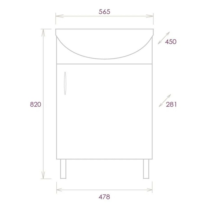 Комплект мебели для ванной: "Викотория 55" правый: Тумба + раковина "Стиль 55"+ зеркало-шкаф