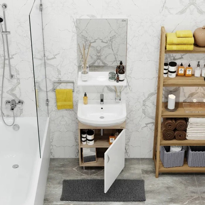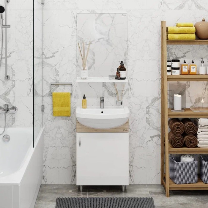 Комплект мебели для ванной комнаты "Гармония 55": тумба с раковиной + зеркало-шкаф