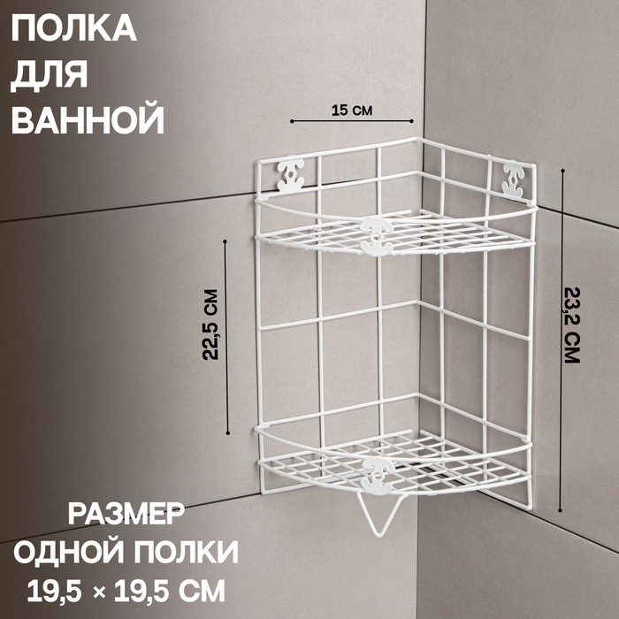Полка угловая 2-х ярусная Доляна, 20×20×33 см, цвет белый
