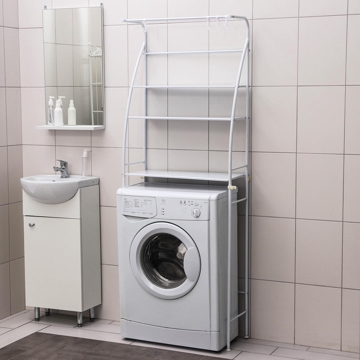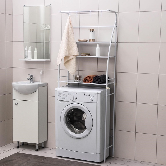 Как разместить всё необходимое в небольшой ванной? Металлическая стойка поможет расположить всё необходимое. Благодаря удобной конструкции можно рационально использовать свободное пространство над унитазом или стиральной машинкой. На стеллаже можно с лёгкостью разместить полотенца, бытовую химию и средства гигиены. Практичный и функциональный, стеллаж дополнит любой интерьер.