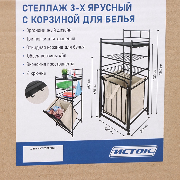 Стеллаж с корзиной для белья станет прекрасным дополнением вашего интерьера и поможет эргономично организовать пространство.