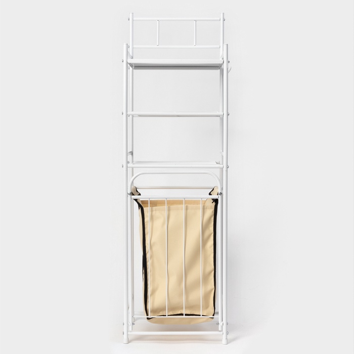 Стеллаж с корзиной для белья 3-х ярусный, 38×35×125 см, цвет белый