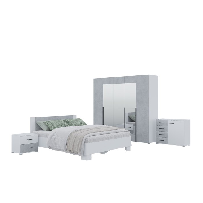 Спальный гарнитур Бостон, Кровать 1600, Комод, 2 тумбы, Шкаф 2000, Белый/Бетон
