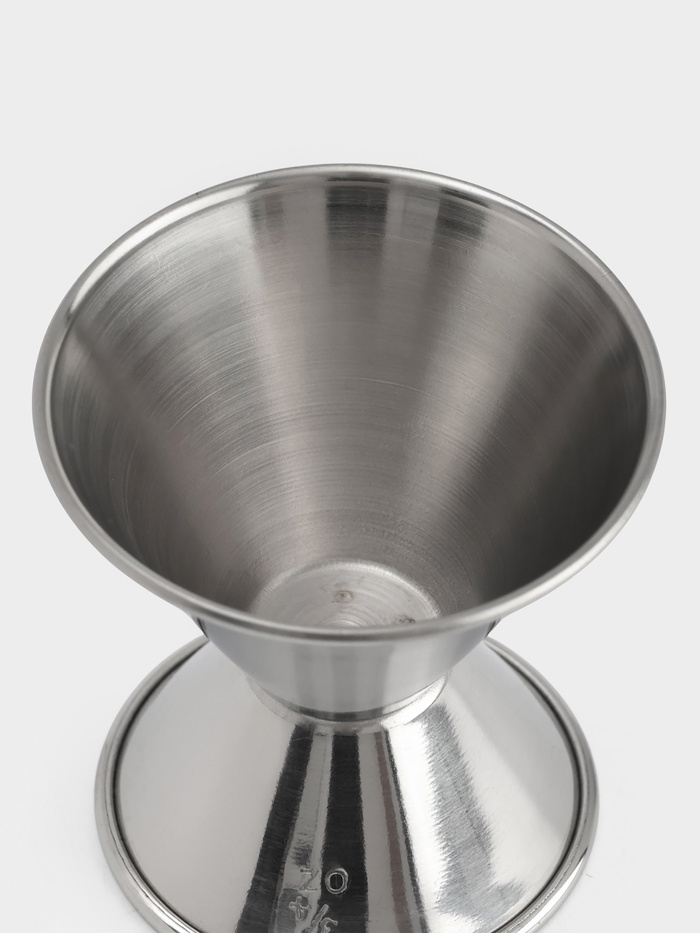 Джиггер с объемами 25 и 50 мл — это компактный и надежный инструмент, который облегчает процесс приготовления напитков. Благодаря двум разным чашам можно быстро отмерить нужное количество ингредиентов без лишних приборов, что особенно важно при создании сложных коктейлей.