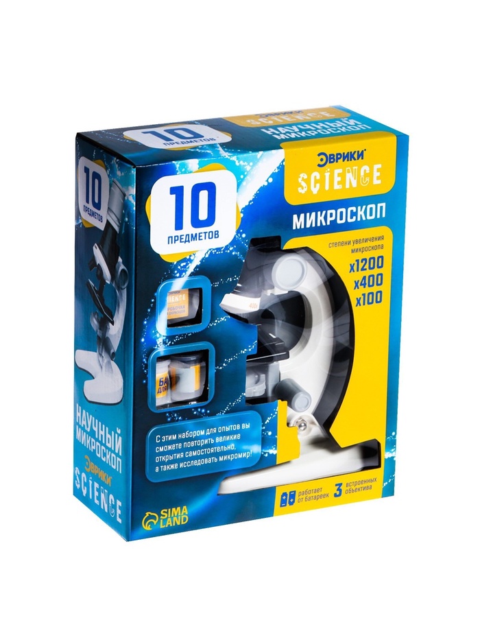 Микроскоп детский «Юный ботаник», кратность х100, х400, х1200, подсветка