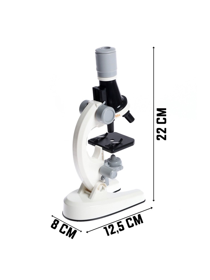 Микроскоп, кратность увеличения 450х, 200х, 80х, с подсветкой, белый