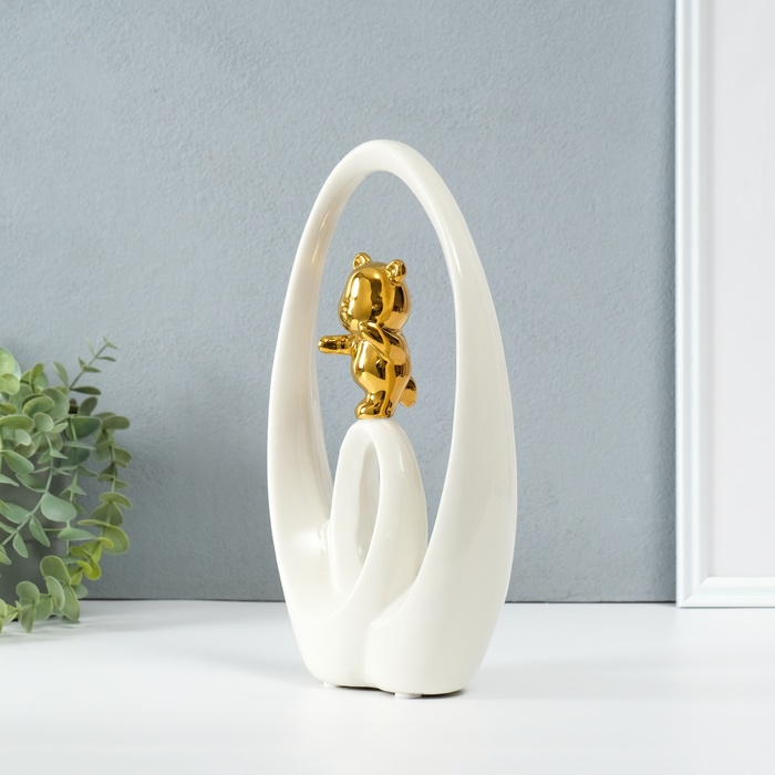 Сувенир керамика "Медвежонок - сны наяву" белый с золотом 6х15,5х27 см