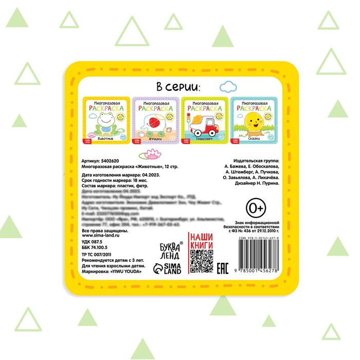 Многоразовая раскраска имеет глянцевое покрытие на страницах. На нём можно много раз писать маркером и стирать написанное.