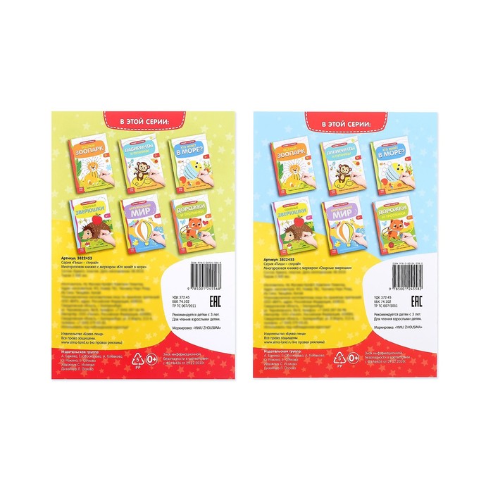 Книги с маркерами — это бесконечное удовольствие и развивающая игра в одном издании. Малыш может рисовать, обводить и выполнять увлекательные задания книжки, а затем стереть всё написанное с помощью колпачка-маркера и начать заново. Маркер легко удаляется, и любимые задания можно выполнять снова и снова.