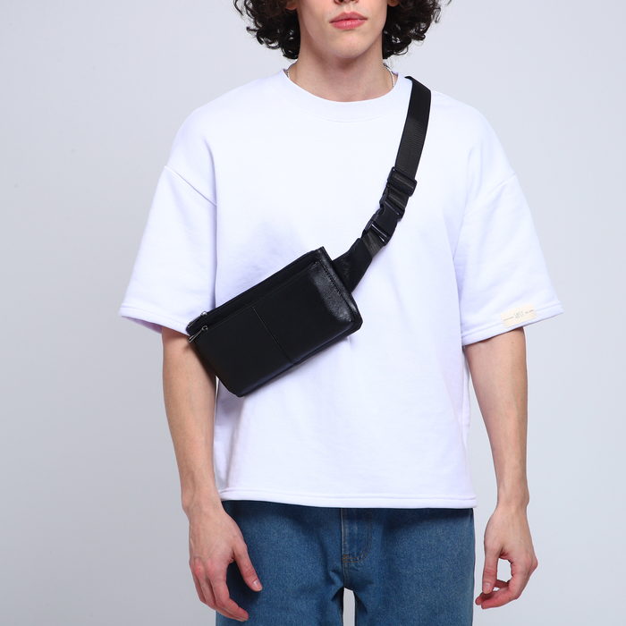 Сумка поясная «Билет», 28х7х14 см, отдел на молнии, наружный карман, цвет чёрный