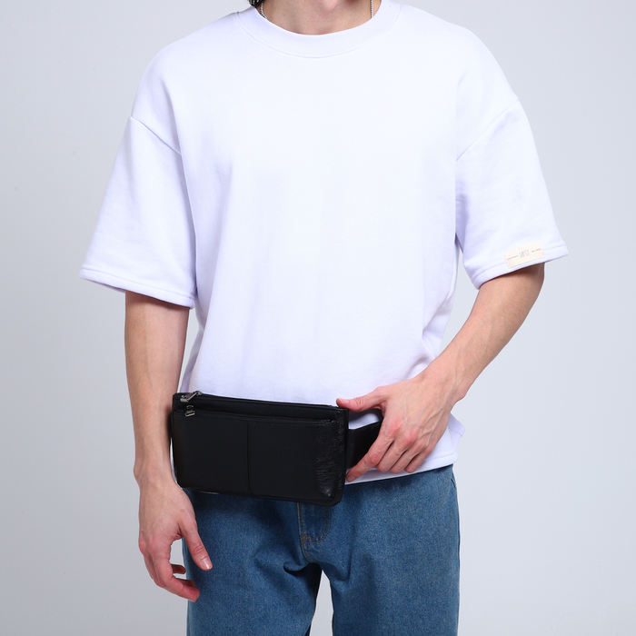 Сумка поясная на молнии, 2 наружных кармана, цвет чёрный