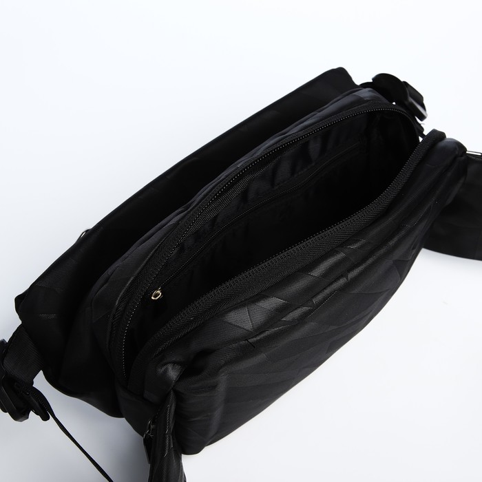 Сумка на одно плечо на молнии, 3 наружных кармана, цвет чёрный