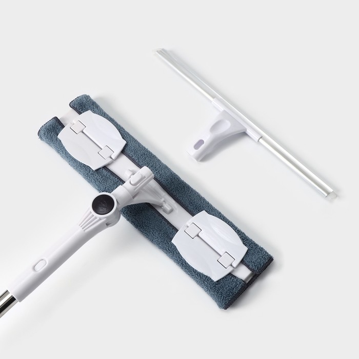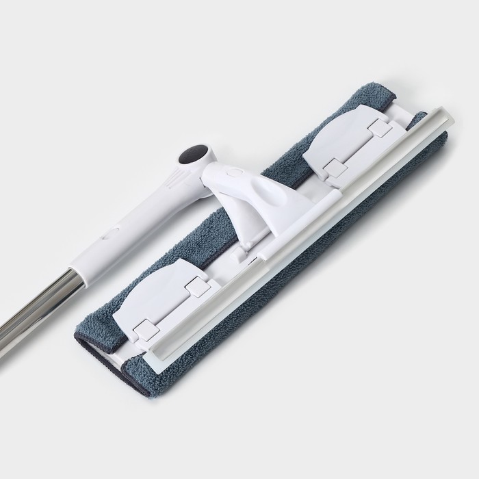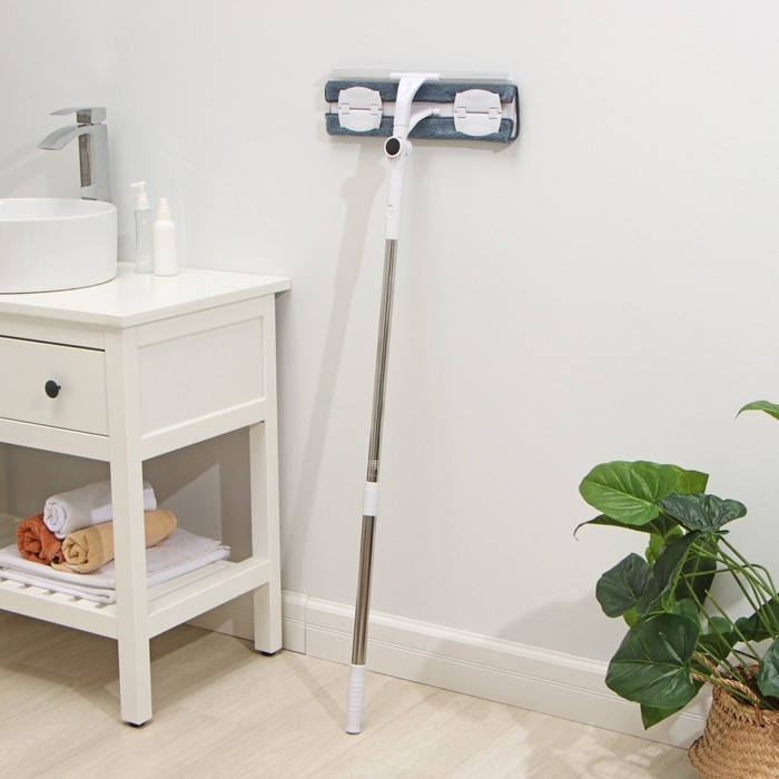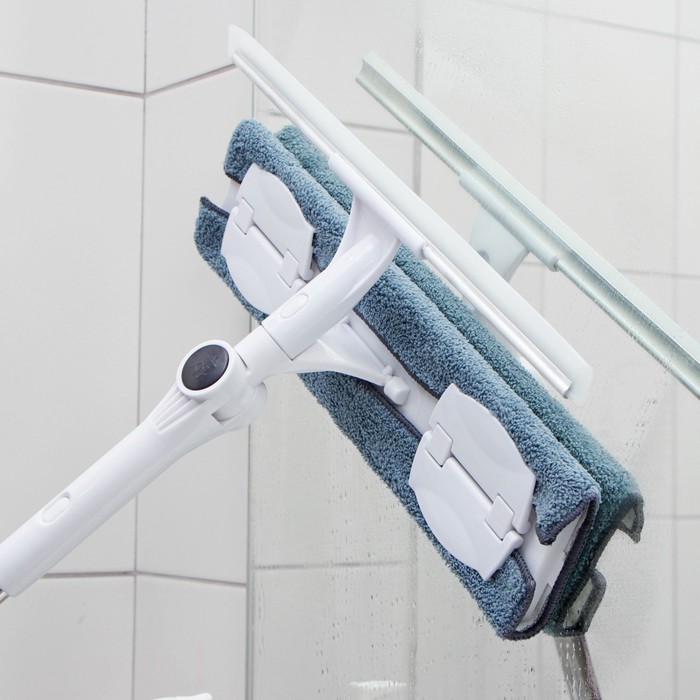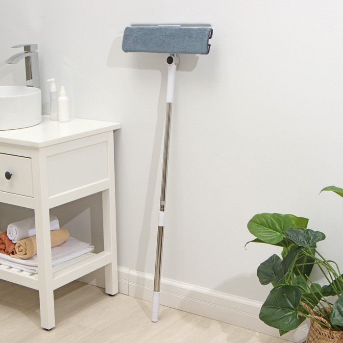 Окномойка с телескопической металлической ручкой Доляна, 13×13×55(92) см, поворотная головка, микрофибра, цвет синий
