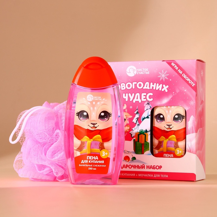 Подарочный набор "Новогодних чудес", пена для ванны и мочалка для тела, ваниль