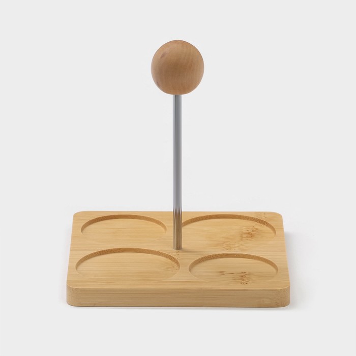 Набор фарфоровый для специй на бамбуковой подставке BellaTenero, 5 предметов: солонка, перечница, 2 соусника, подставка-держатель, цвет белый