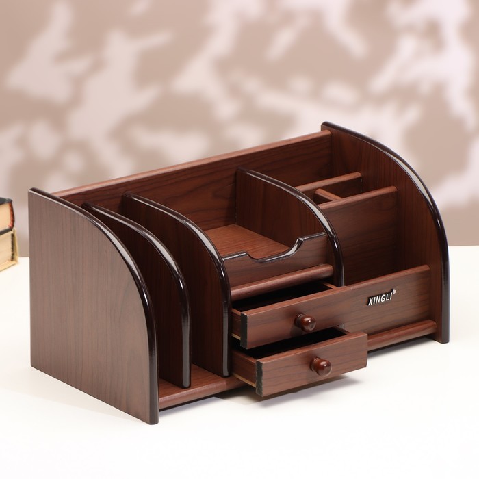 Органайзер 7 секций, 2 выдвижных ящика, серия Орех с кантом темным, 16*30*15см