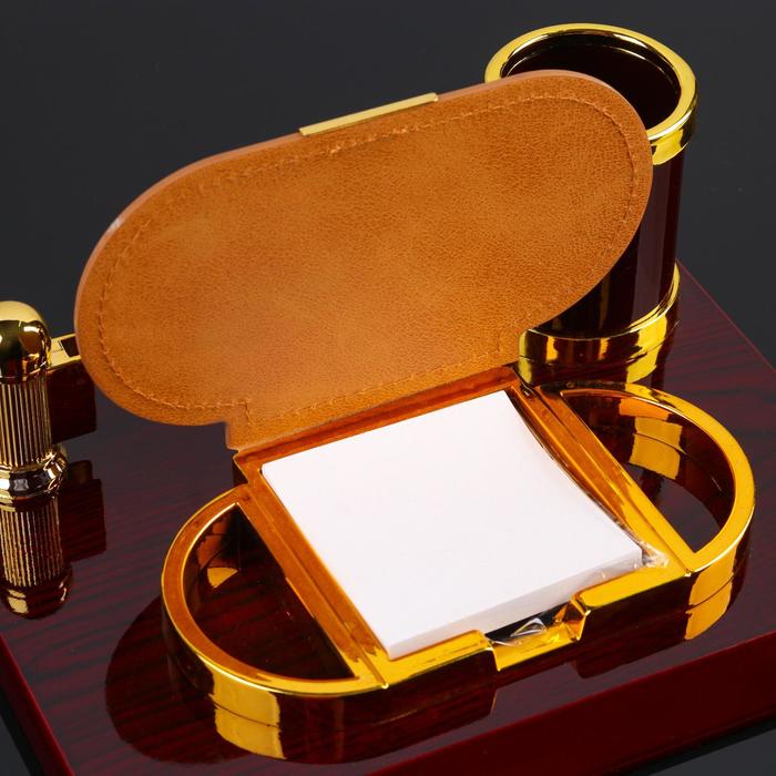 Компактный настольный набор поможет избежать хаоса на рабочем месте. Храните в нём канцелярские принадлежности или другие мелочи, чтобы правильно организовать пространство. К тому же изделие имеет минималистичный дизайн и выполнено под дерево, поэтому оно украсит собой любое место как декоративный элемент.