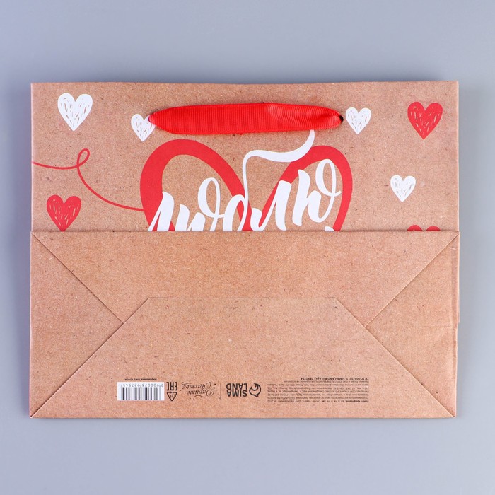 Пакет крафтовый горизонтальный «Люблю тебя», MS 18 × 23 × 8 см