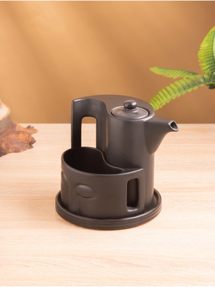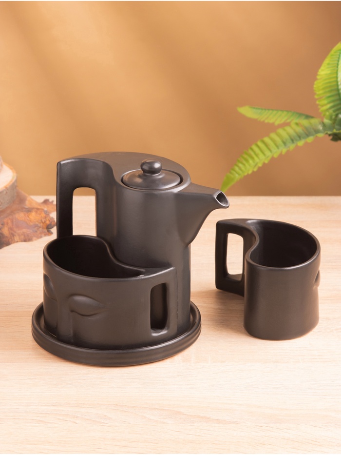 Набор для чаепития «Фантазия» — идеальное решение для ценителей изысканного чаепития на двоих. Чёрный однотонный цвет и гладкая текстура создают элегантное сочетание, а фигурная форма и барельефный декор добавляют особую изюминку. В набор входят керамический чайничек и две кружки, позволяющие насладиться теплым напитком в уютной обстановке. Посуда легко моется в посудомоечной машине и подходит для использования в СВЧ-печи.