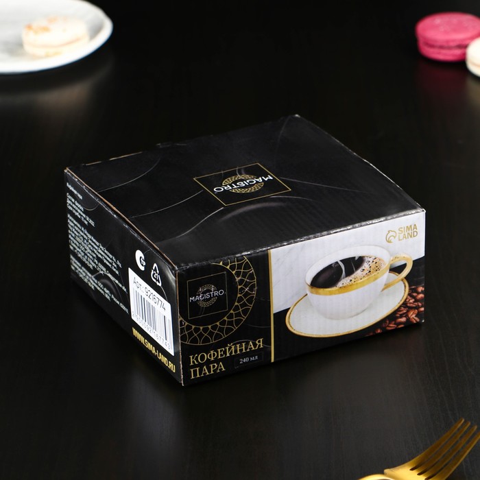 Чайная пара фарфоровая Magistro Poursephona, 2 предмета: чашка 240 мл, блюдце d=16 см, цвет бежевый