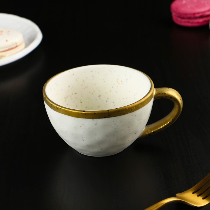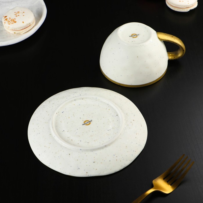 Чайная пара фарфоровая Доляна Organic Gold, 2 предмета: чашка 230 мл, блюдце d=16 см, цвет белый
