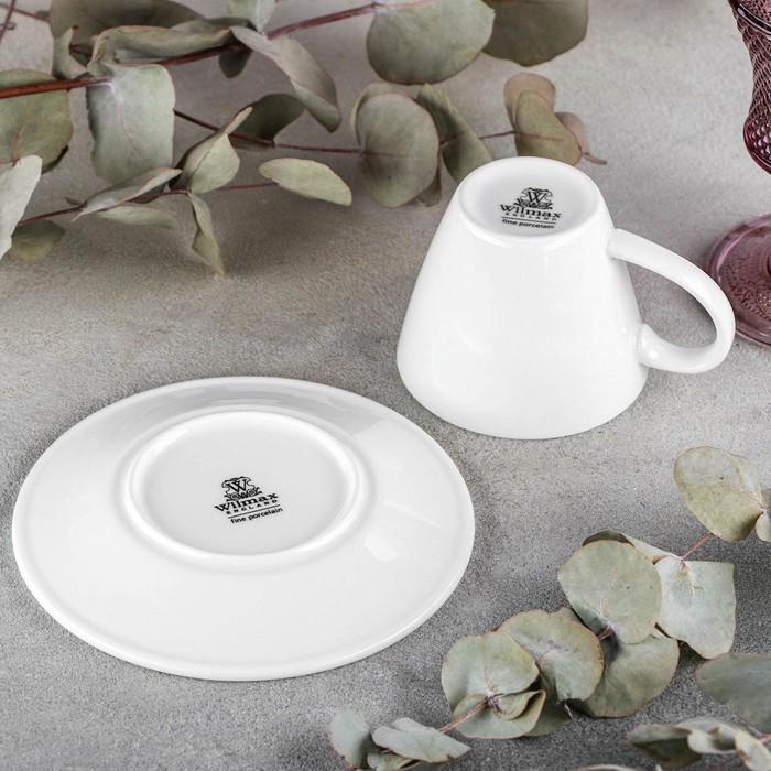 Чайная пара фарфоровая Wilmax, 2 предмета: чашка 180 мл, блюдце d=14 см, цвет белый за 400.00 ₽ Купить оптом и в розницу на tijorat.com | Быстрая доставка | скидки