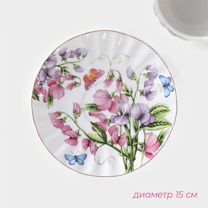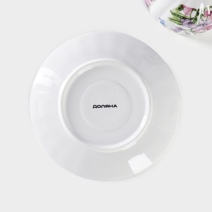 Чайная пара керамическая Доляна «Колокольчики», 2 предмета: чашка 250 мл, блюдце d=15 см, цвет белый