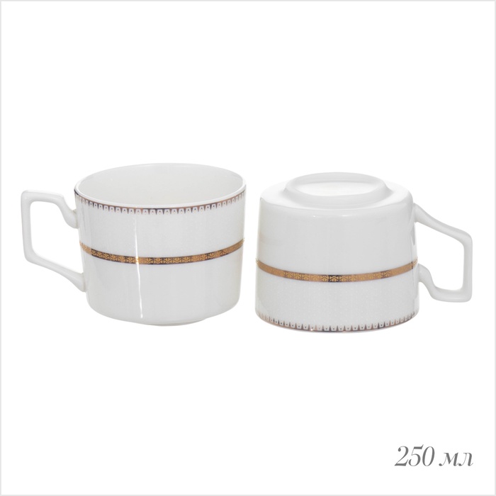 Сервиз фарфоровый чайный Доляна «Лаванда», 4 предмета: 2 чашки 220 мл, 2 блюдца d=14,2 см, цвет белый