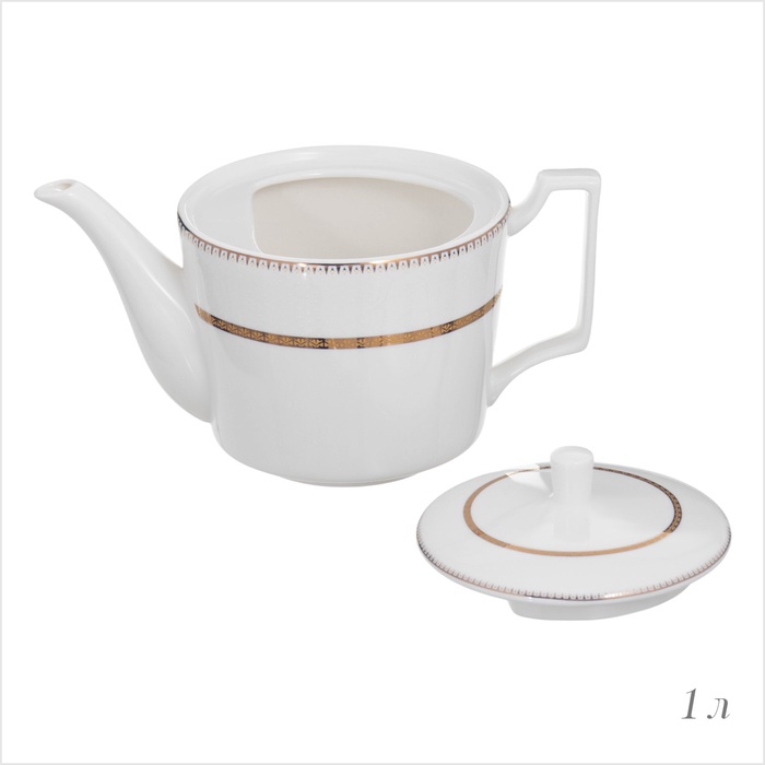 Чайный сервиз WY Grace, 20 предметов, чайник 1000 мл, 6 кружек 250 мл, 6 блюдец d=15,5 см, 6 тарелок пирожковых d=20,5 см, фарфор